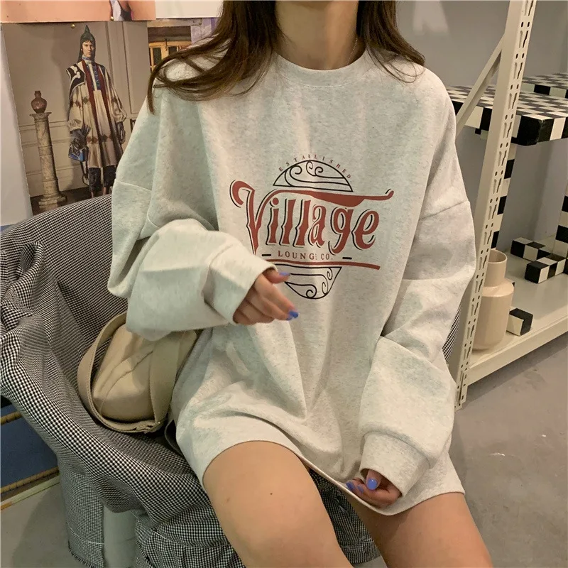 Женская футболка с длинным рукавом и круглым вырезом, свободного покроя