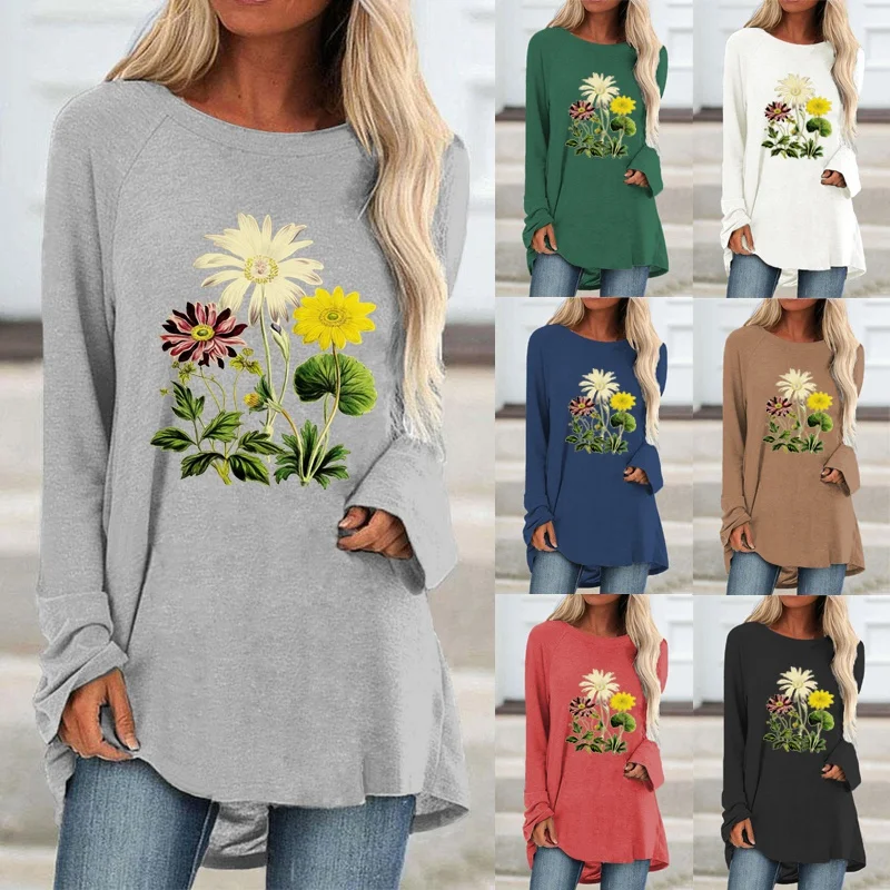 Женская футболка с длинным рукавом и круглым вырезом, свободного покроя