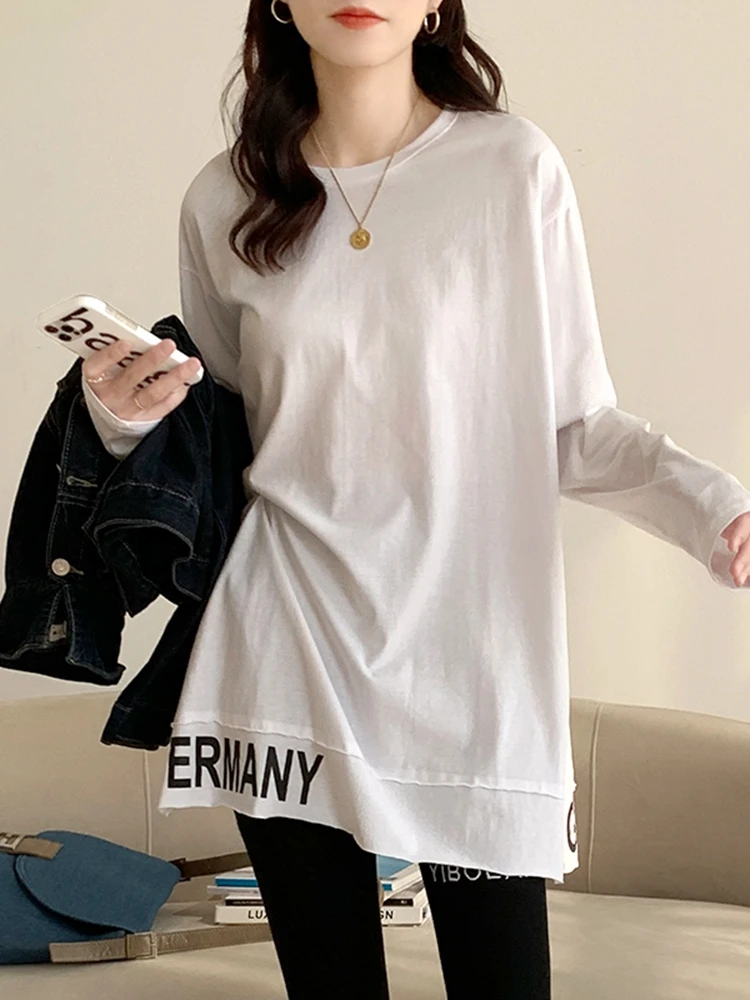 Женская футболка с длинным рукавом и круглым вырезом, свободного покроя