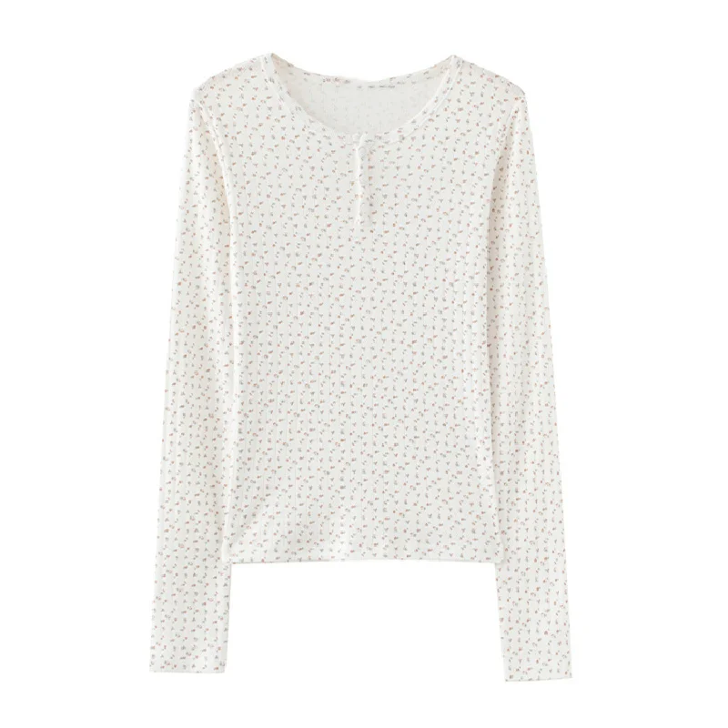 Женская футболка с длинным рукавом, круглым вырезом и цветочным принтом