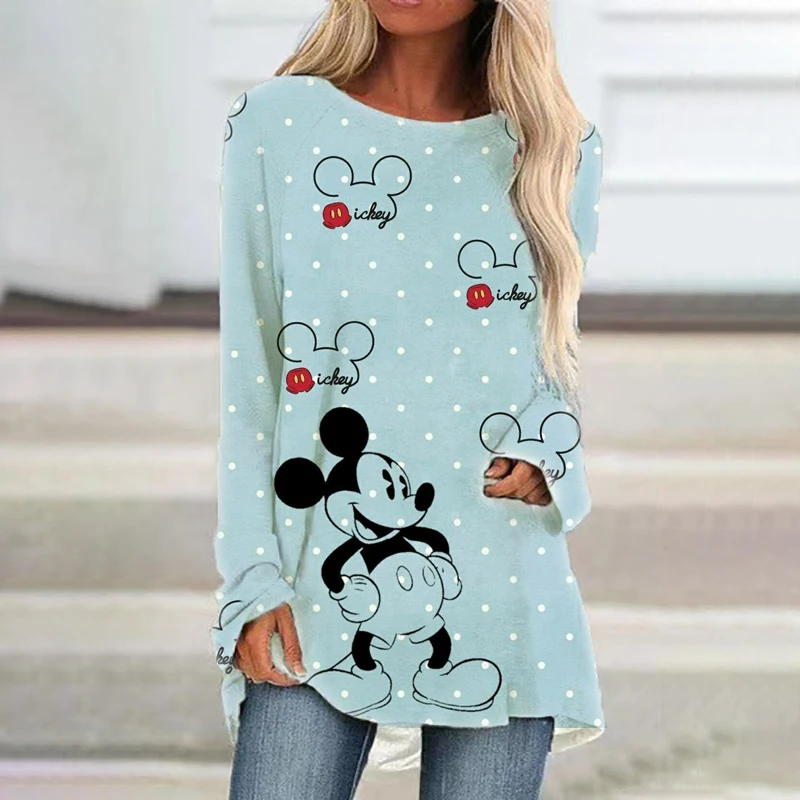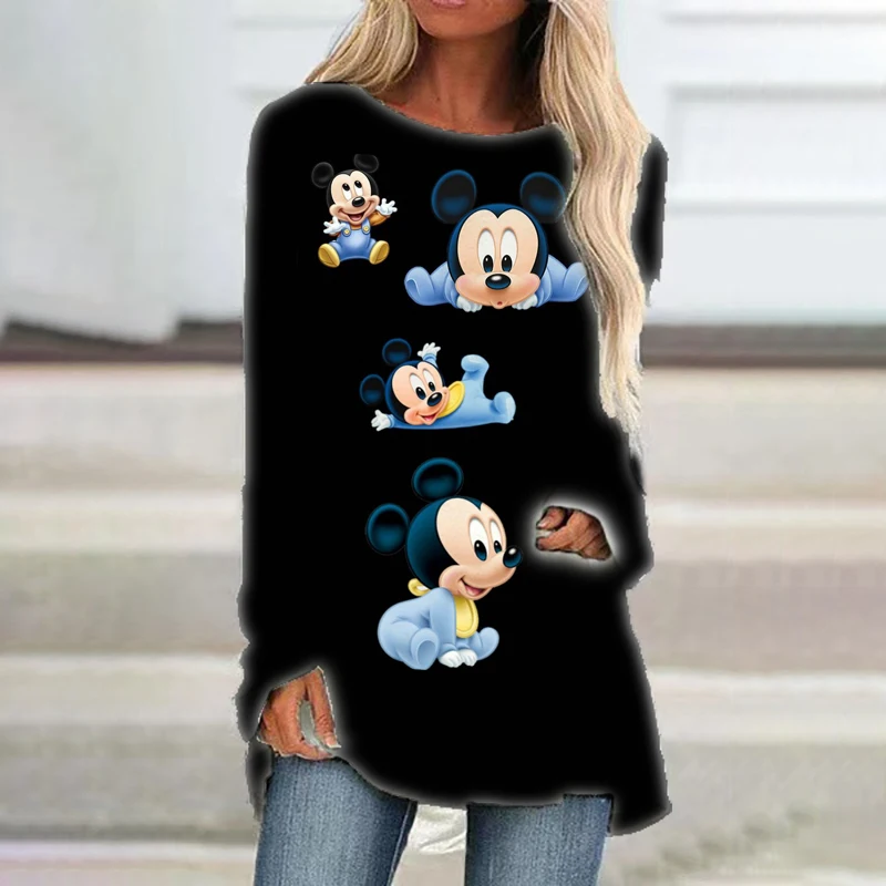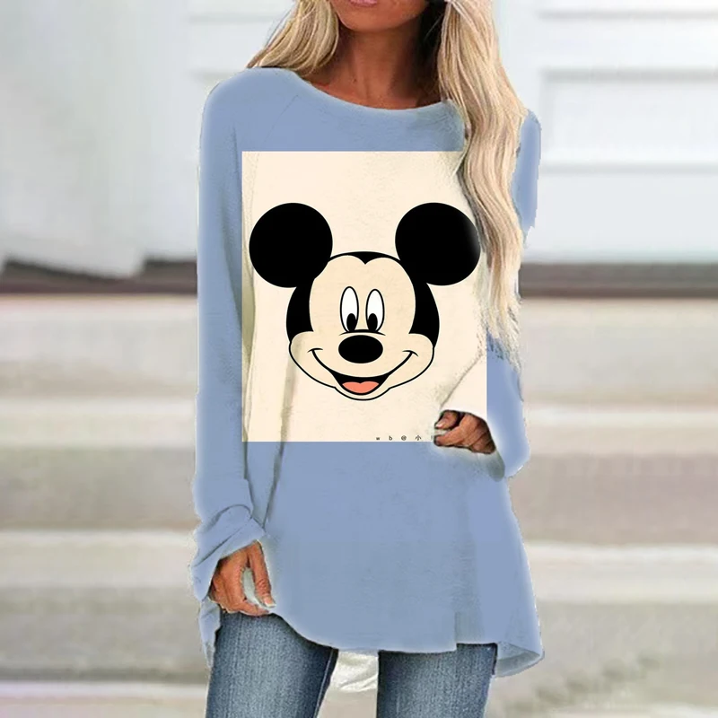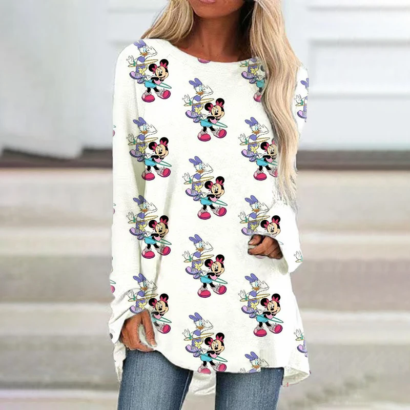 Женская футболка с длинным рукавом и принтом Минни и Микки, размеры до 5XL