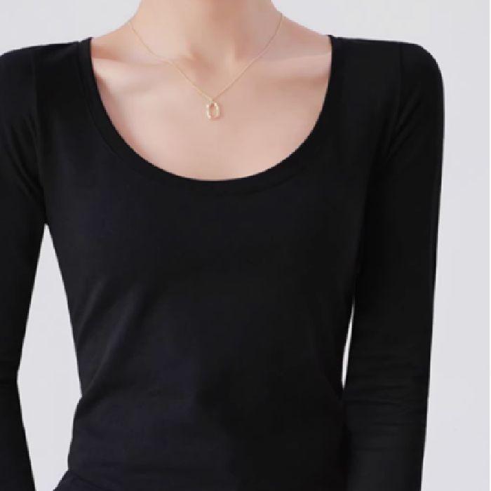 Женская футболка с длинным рукавом и U-образным вырезом, базовый слой, черная – теплая и облегающая, для весны и осени M чёрный