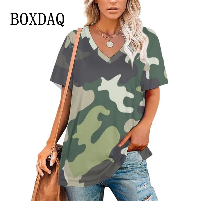 Женская футболка с коротким рукавом и камуфляжным принтом, свободного покроя