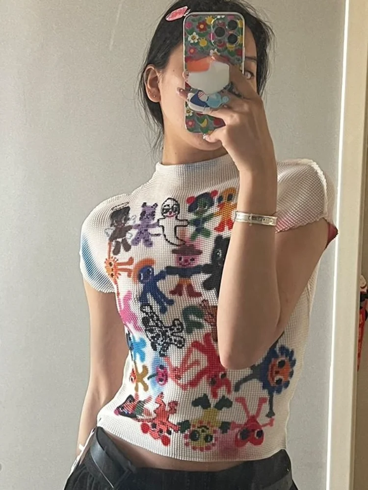 Женская футболка с коротким рукавом, круглым вырезом и мультяшным принтом