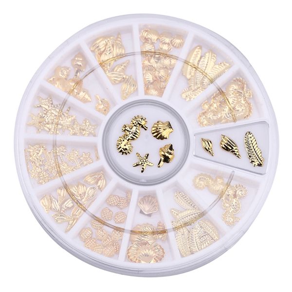 metal nail art ocean animal rivet studs starfish sea horse shell pattern 3d decoration wheel, Silver;gold