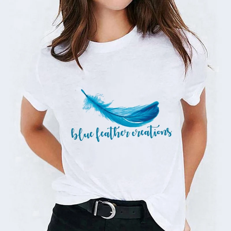 Женская футболка с коротким рукавом, круглым вырезом и принтом птиц