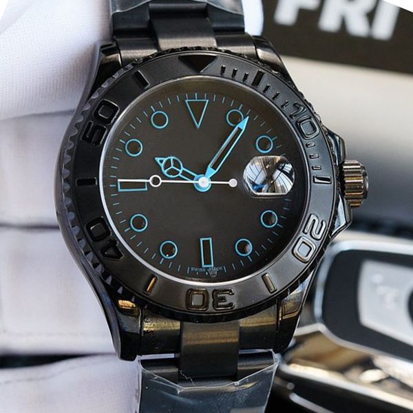 new mens watch all black dial pink blue pin sapphire case stainless steel rubber strap automatic mechanical movement 40mm mens yacht watch, Slivery;brown