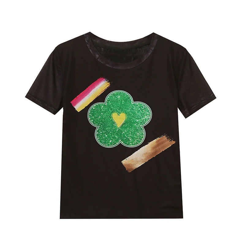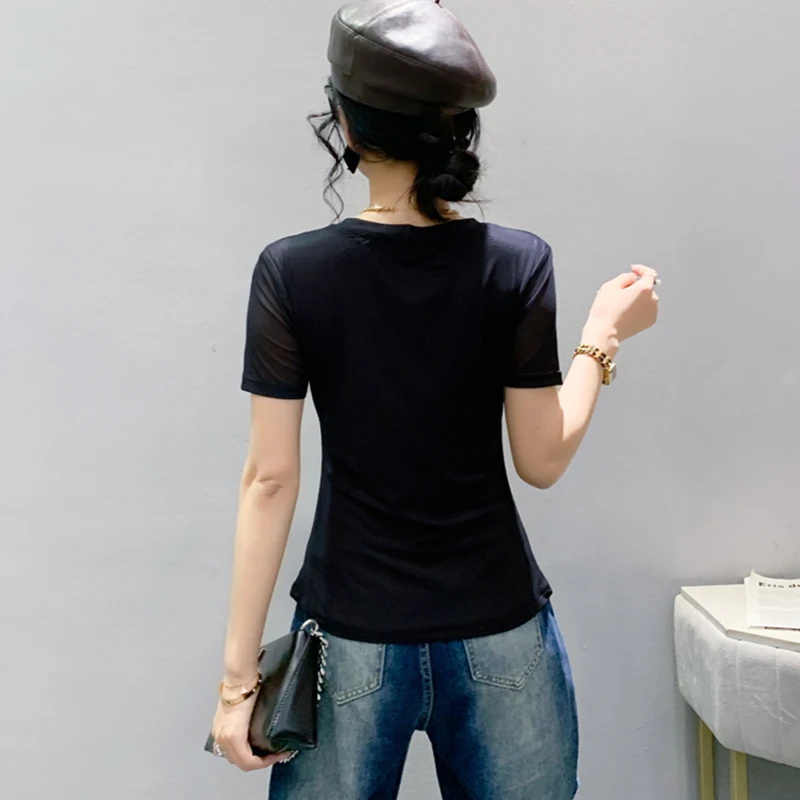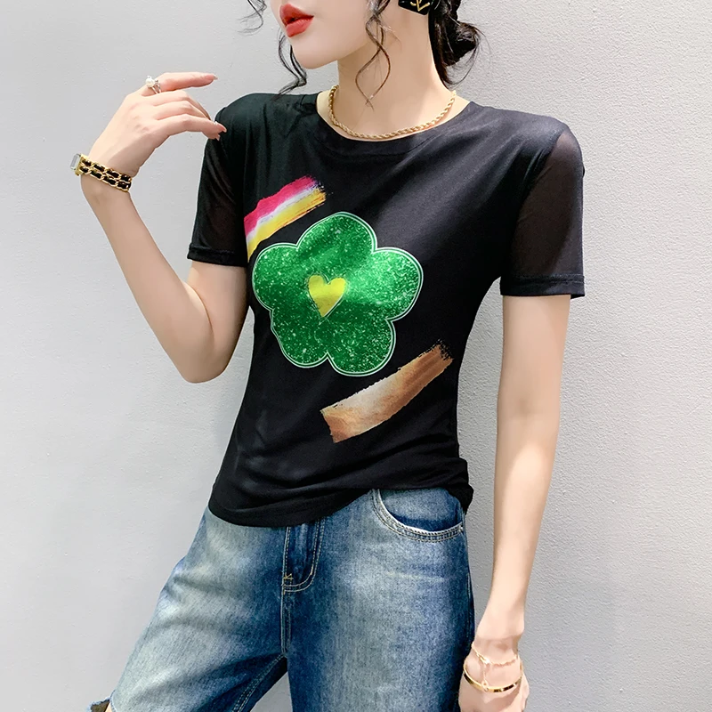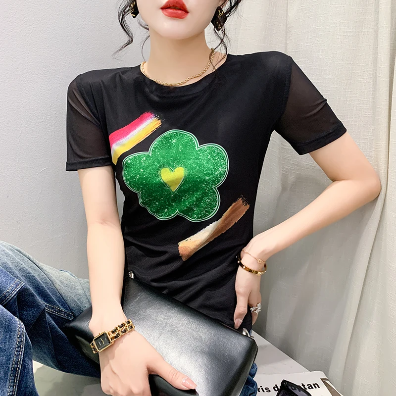 Женская футболка с коротким рукавом, летняя Сетчатая футболка с принтом, модель 2023 в европейском стиле, 33130