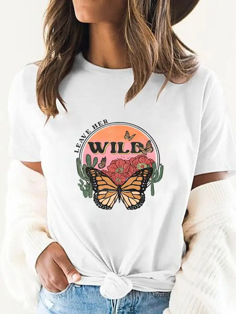 Женская футболка с коротким рукавом, летняя повседневная футболка с принтом в виде бабочек и цветов, в стиле 90-х