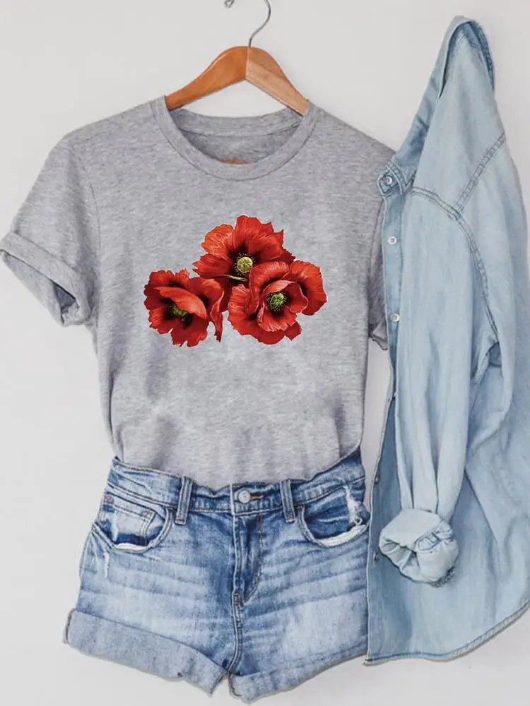Женская футболка с коротким рукавом, летняя футболка с цветочным принтом в стиле 90-х