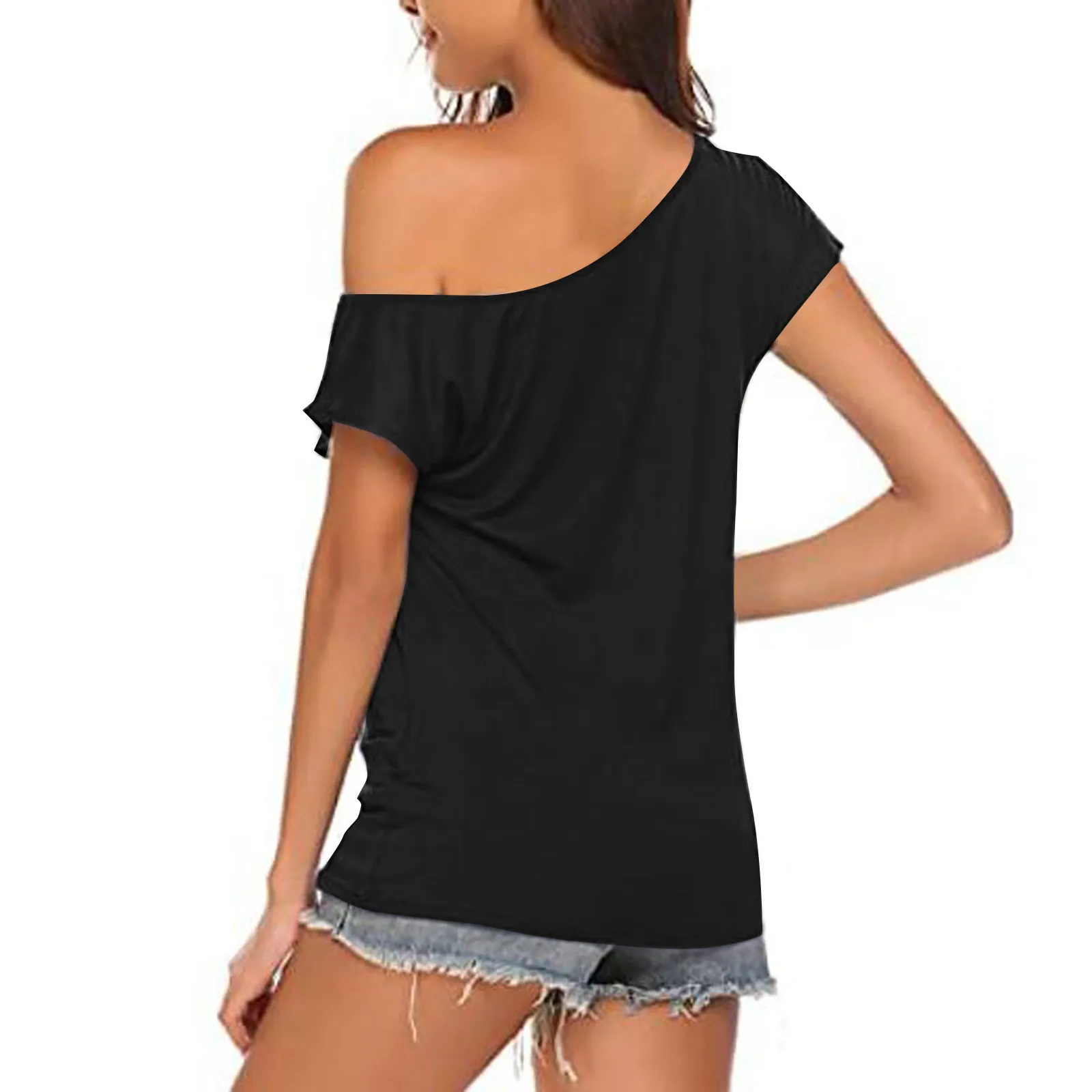 Женская футболка с коротким рукавом и открытыми плечами, с принтом