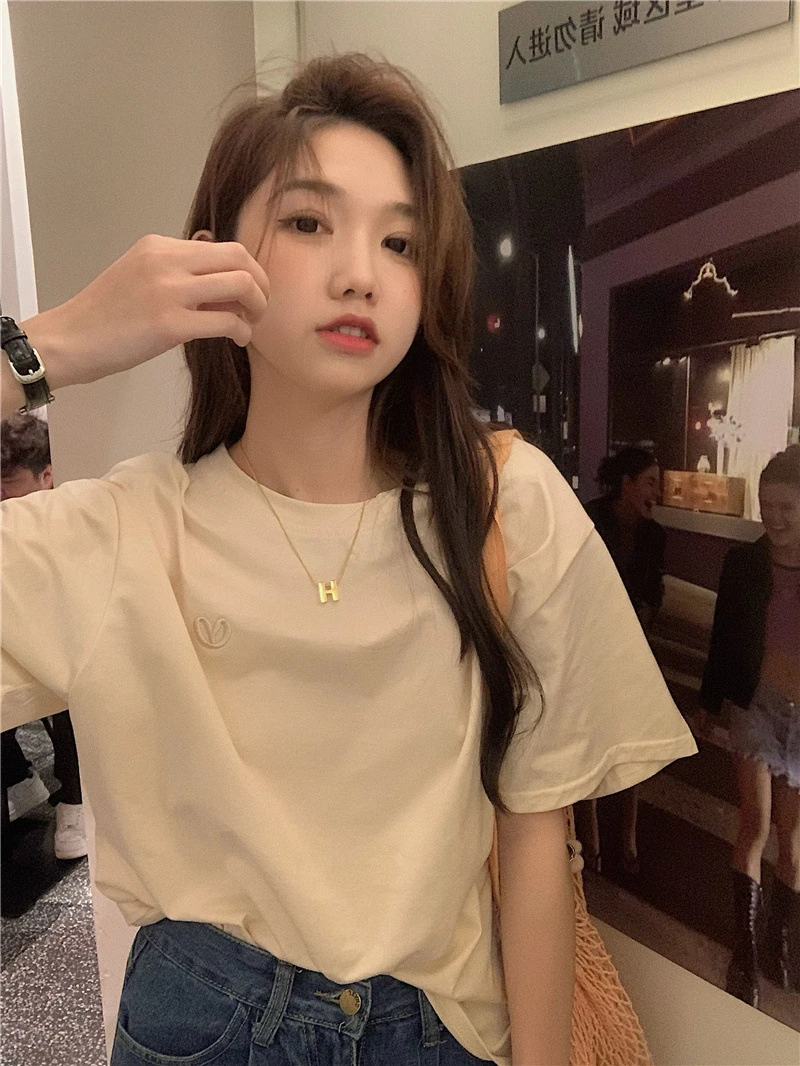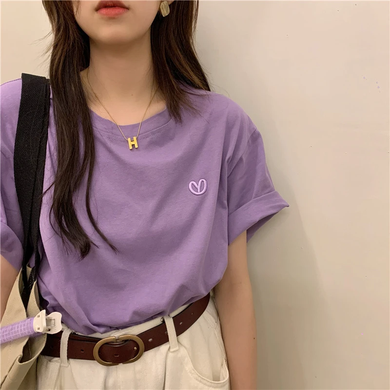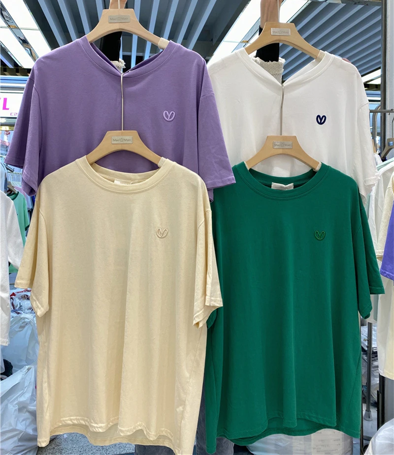Женская футболка с коротким рукавом и принтом в виде сердца, свободного покроя