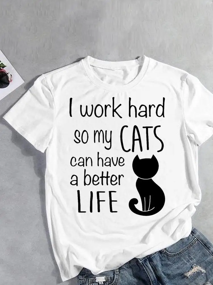 Женская футболка с коротким рукавом, принтом и надписью «Кот»