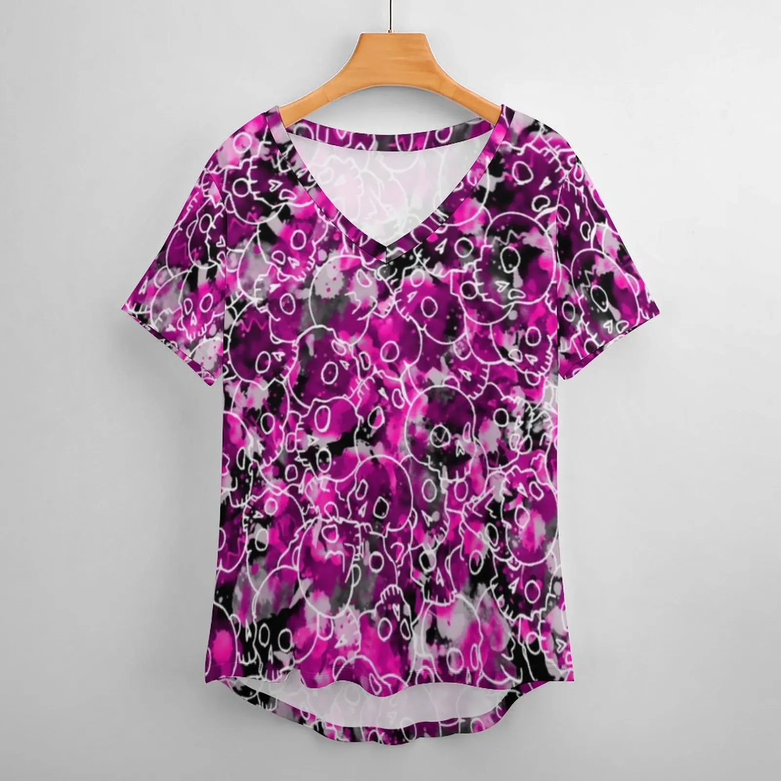 Женская футболка с коротким рукавом, V-образным вырезом и абстрактным принтом