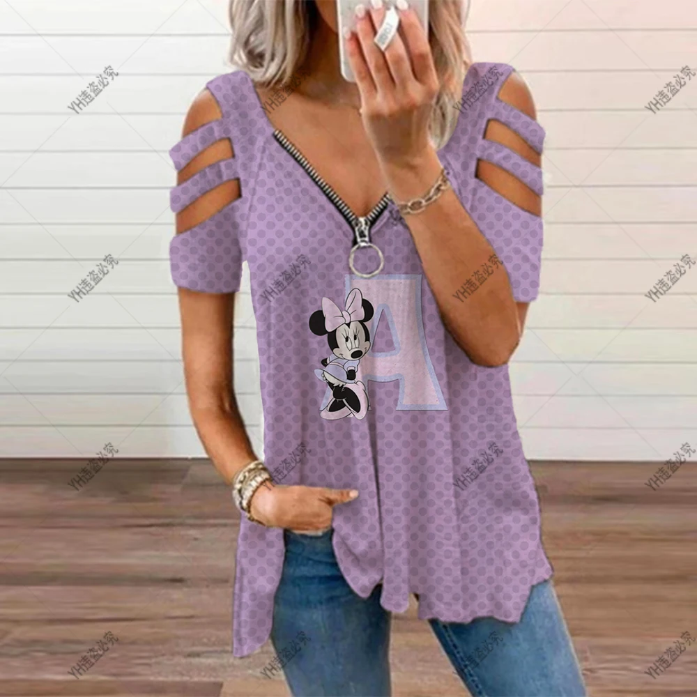 Женская футболка с коротким рукавом и V-образным вырезом, с принтом Минни