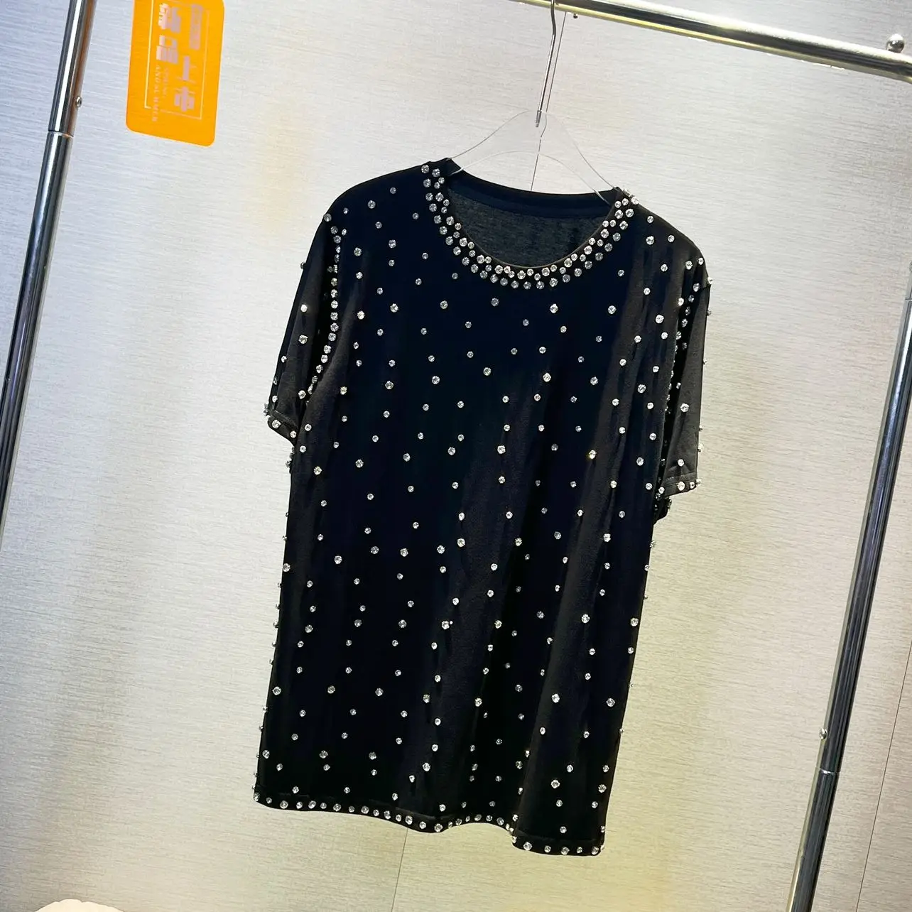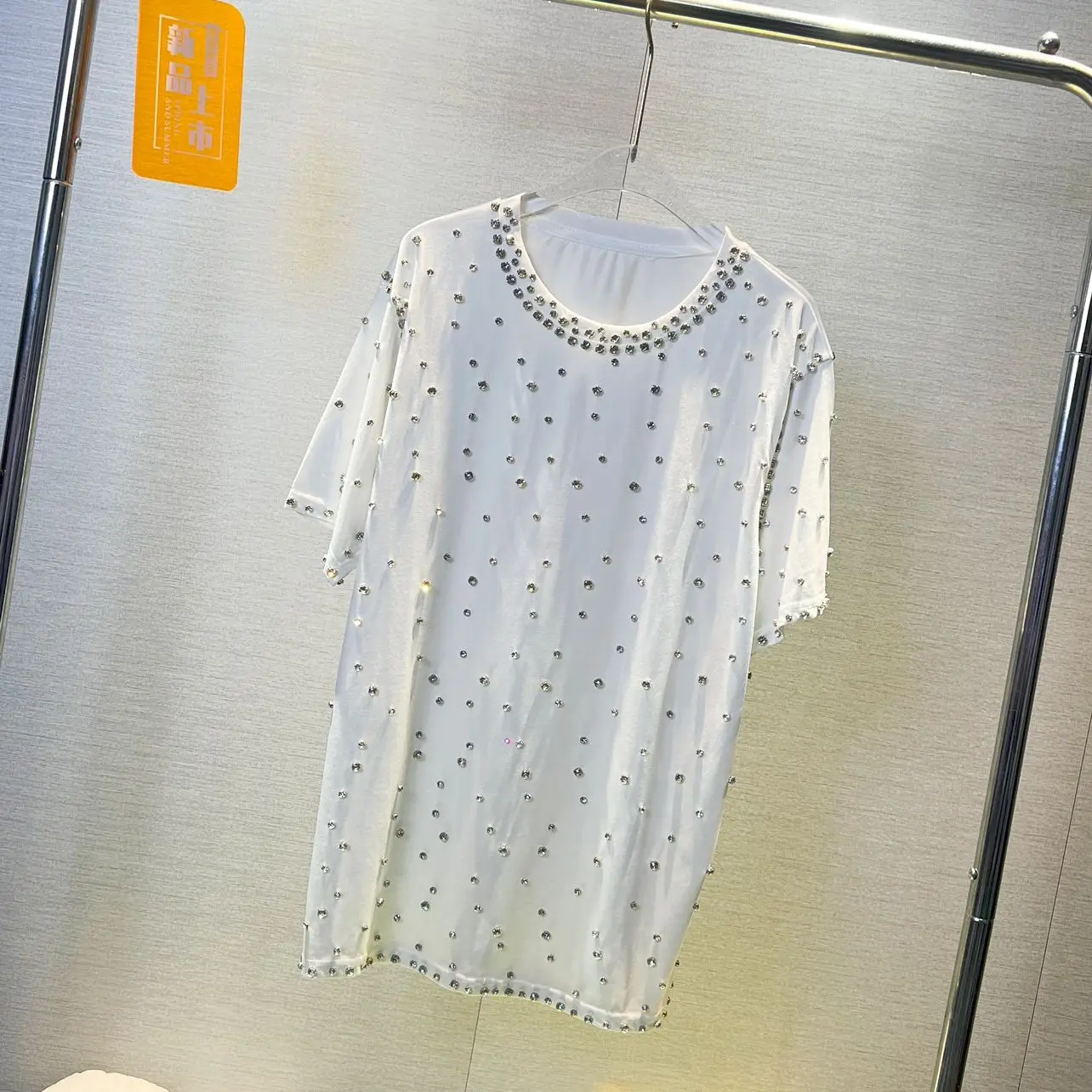 Женская футболка с круглым вырезом и коротким рукавом, свободная приталенная белая футболка средней длины, лето 2023