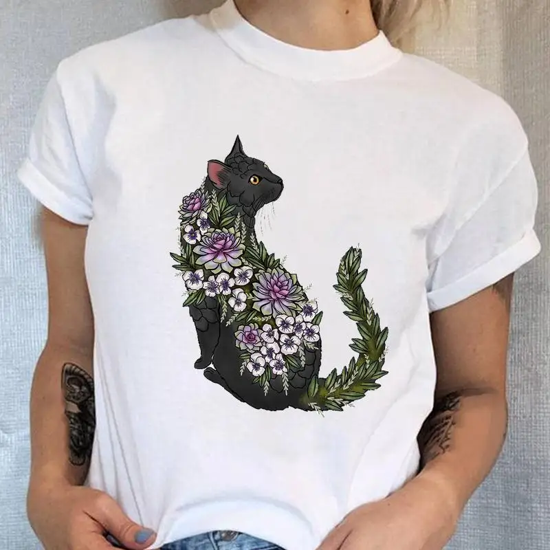 Женская футболка с круглым вырезом, коротким рукавом и цветочным принтом
