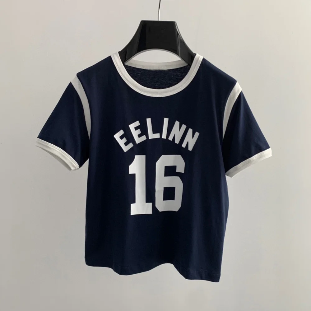 Женская футболка с круглым вырезом, однотонная Повседневная футболка из чистого хлопка с надписью, темно-синие Топы подходящих цветов, лето...