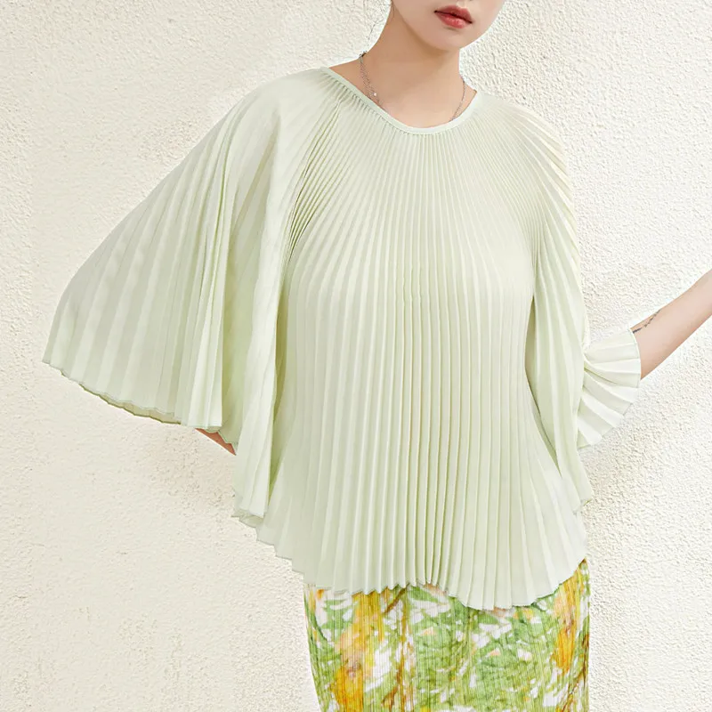 Женская футболка с круглым вырезом, полурукавом и плиссировкой