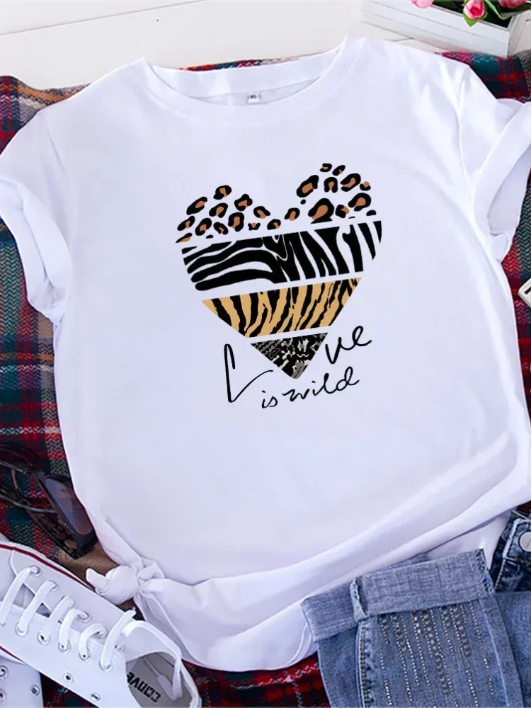 Женская футболка с леопардовым принтом Love Is Wild, свободная футболка с коротким рукавом и круглым вырезом, 2024