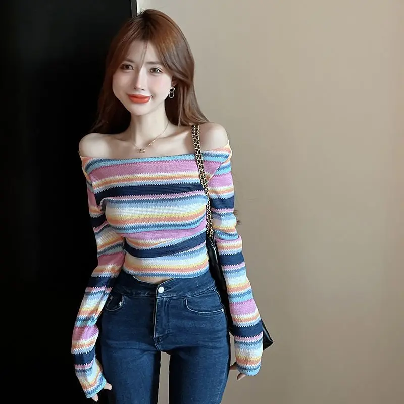 Женская футболка с открытыми плечами, с длинным рукавом и вырезом лодочкой