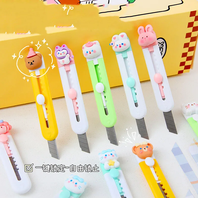 40 pcs/lot Creative Rabbit Bear Animal Utility Knife Scissors Cute Paper Cutter Cutting Paper Razor Blade Office School Supplies