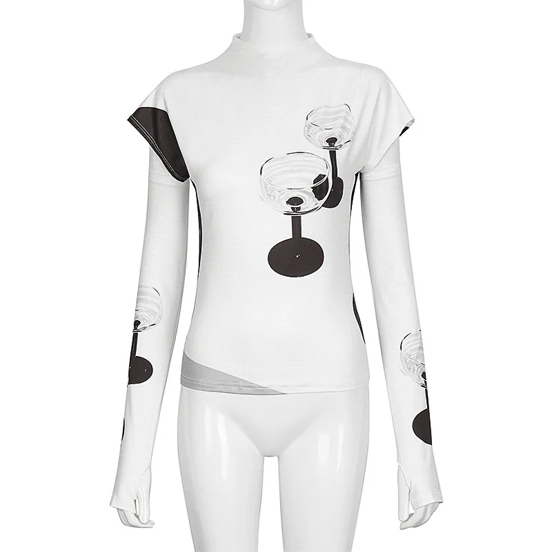 Женская футболка с принтом, Повседневная белая туника с принтом, в Корейском стиле, лето 2022