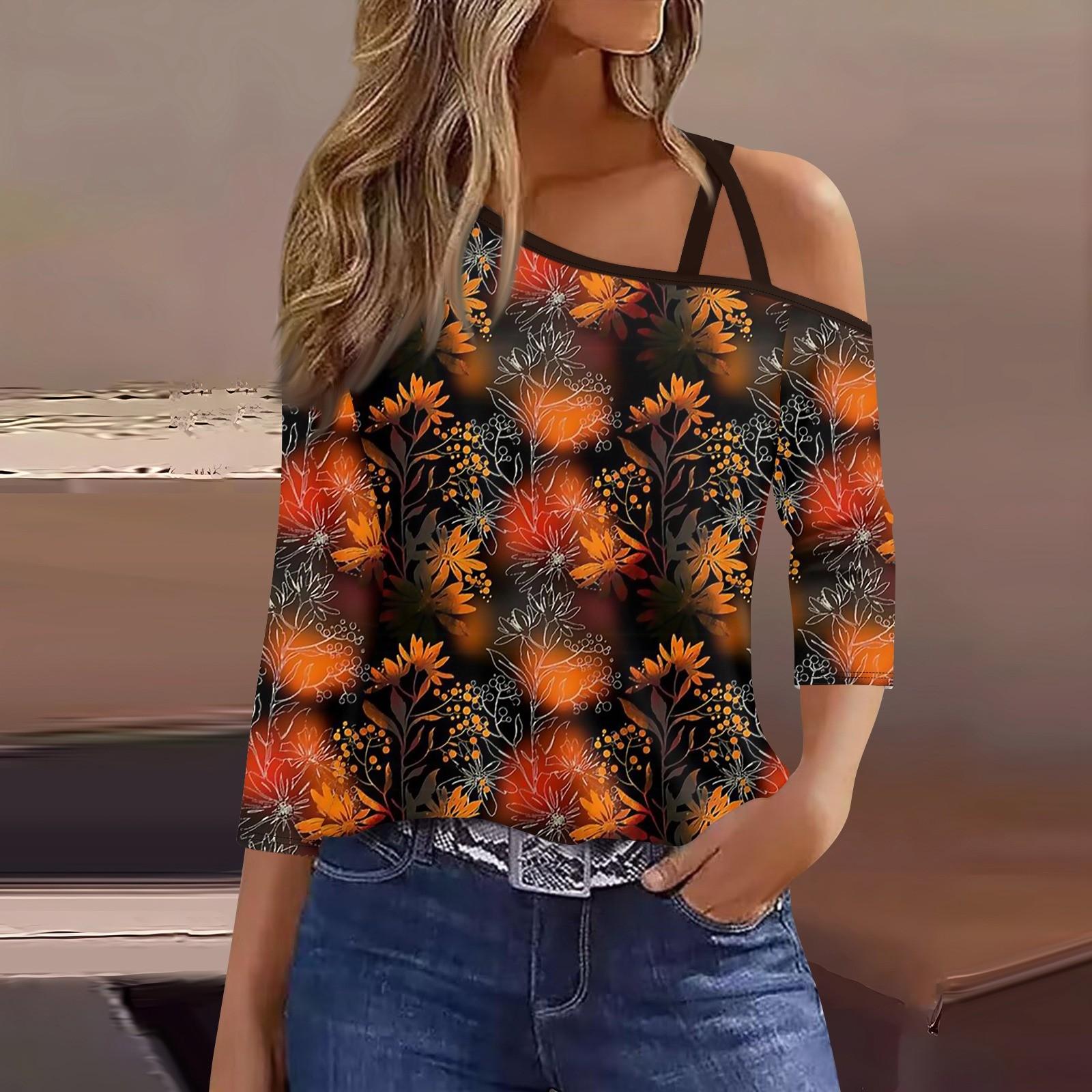 Женская футболка Футболка с принтом Рукав 3/4 Повседневные Выходные Мода Классический с открытыми плечами Обычный Топ S шафрановый