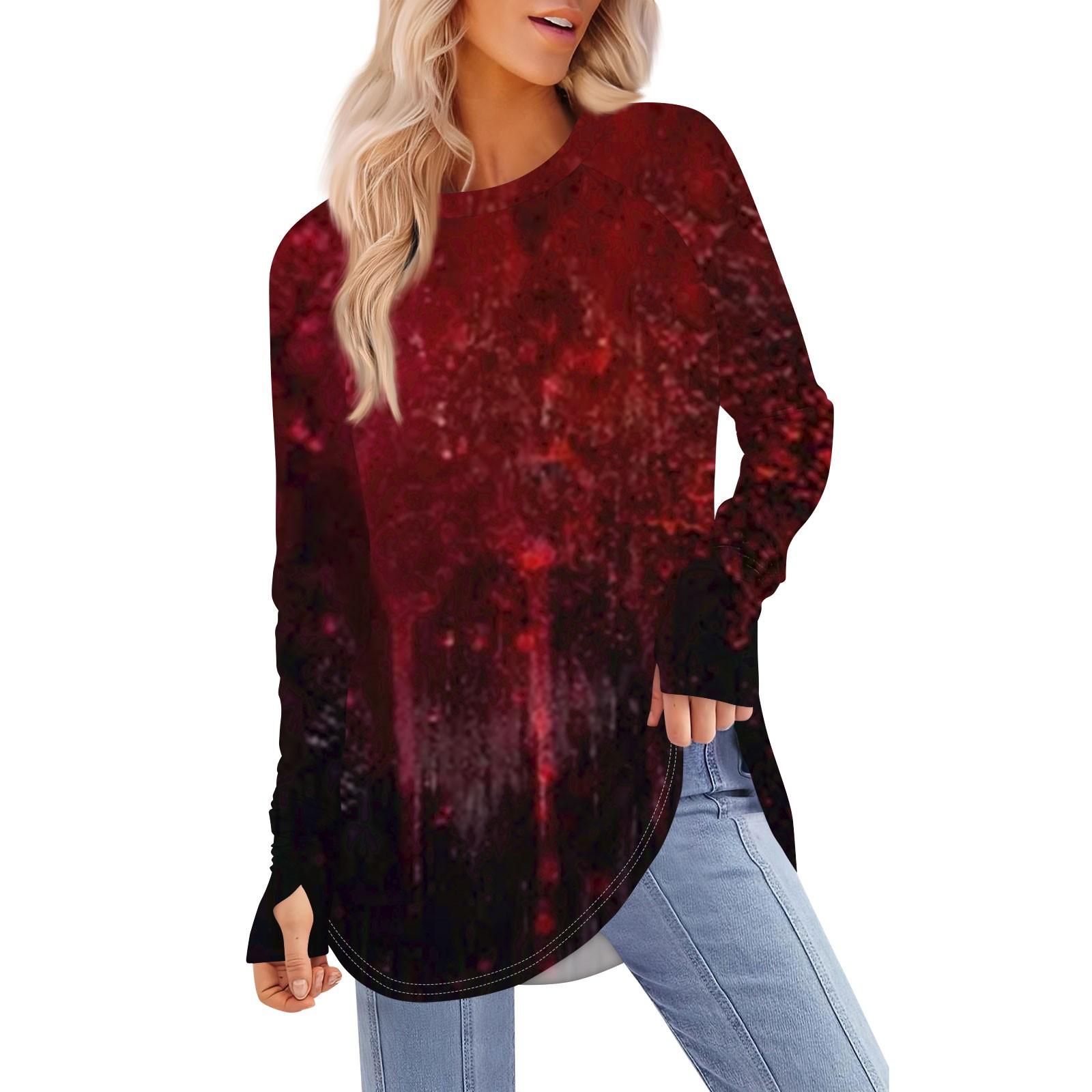 Женская футболка с принтом Хэллоуина, с круглым вырезом, свободная, с длинным рукавом, средней длины, с отсутствующим большим пальцем XXXL винный