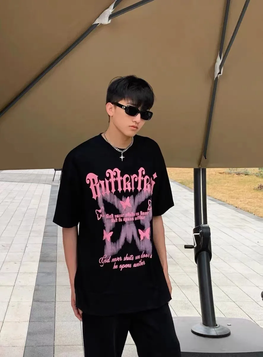 Женская футболка с принтом бабочки, в стиле Харадзюку