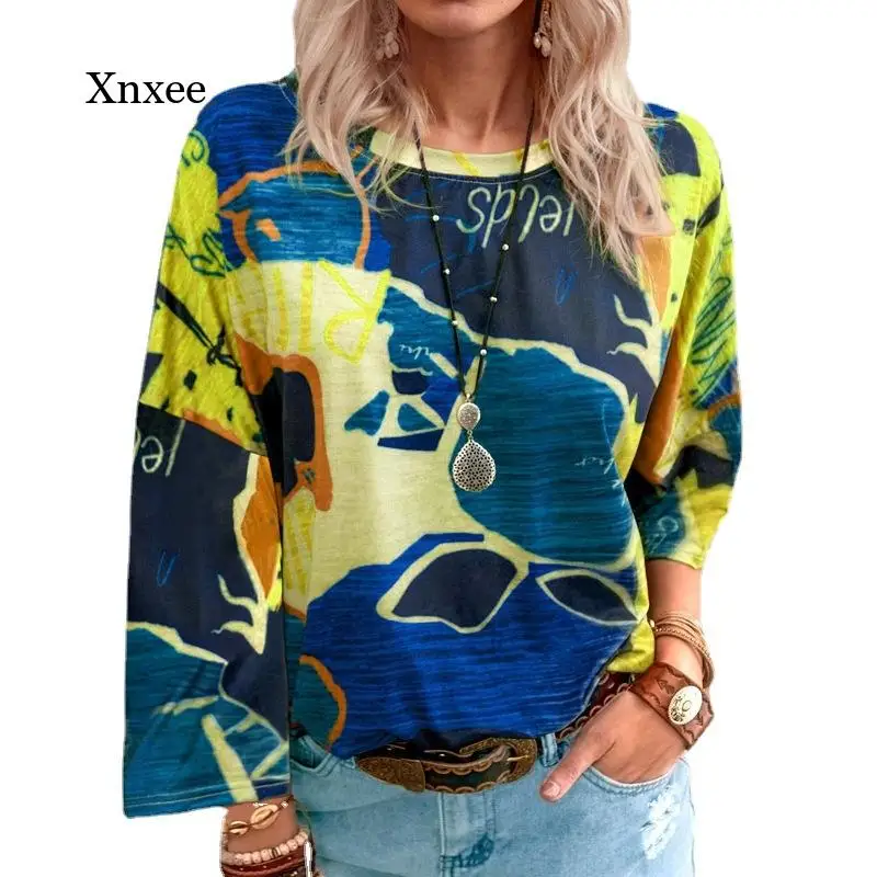 Женская футболка с принтом граффити, Повседневная Свободная футболка с круглым вырезом и длинным рукавом, лето 2021