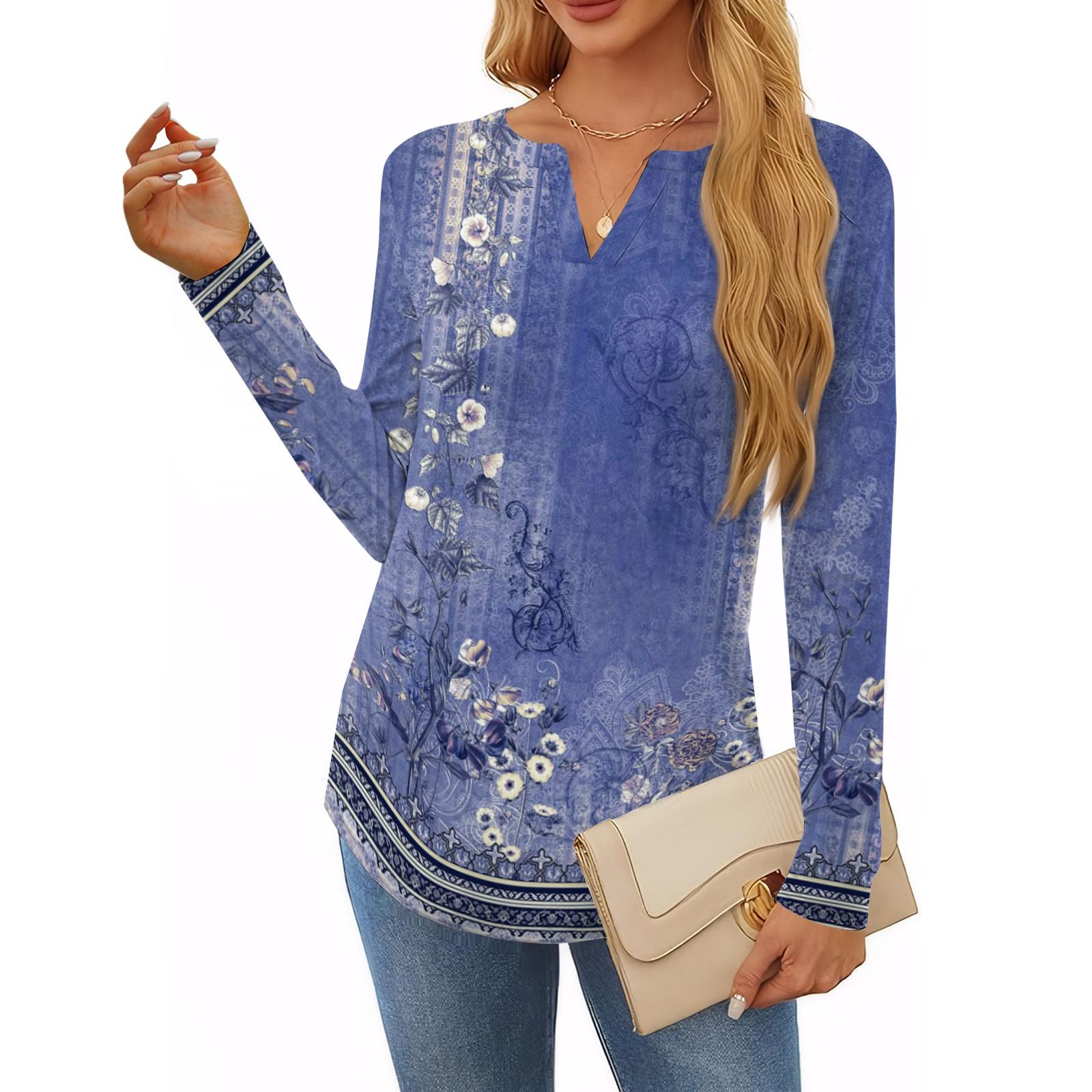 Женская футболка с принтом, длинный рукав, повседневная, выходного дня, модная, базовая, с V-образным вырезом, обычная, топ XXXL синий