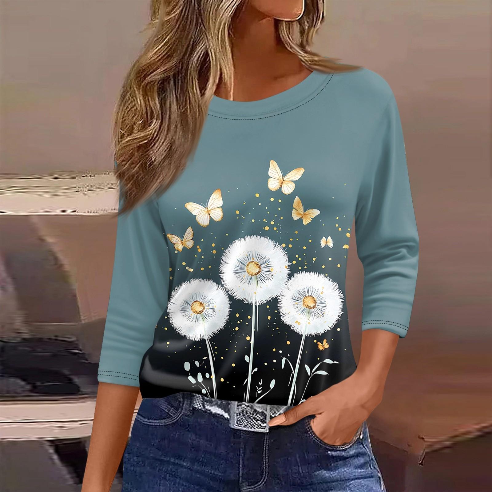 Женская футболка с принтом, рукав 3/4, повседневная, модная, на выходные, базовая, с круглым вырезом, стандартный топ XL белый