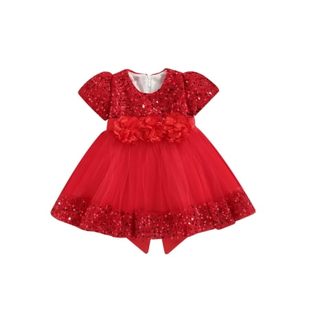 ZIYIXIN Toddler Baby Girls Princess Dress Short Sleeve Sequin Mesh Patchwork Bow-Knot Decor Dress Birthday Wedding Dresses