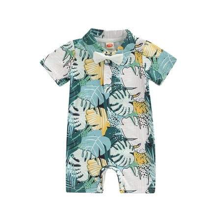 Calsunbaby Newborn Baby Boys Romper Short Sleeve Giraffe Leaves Print Casual Summer Short Jumpsuit Clothes Blue 0-3 Months