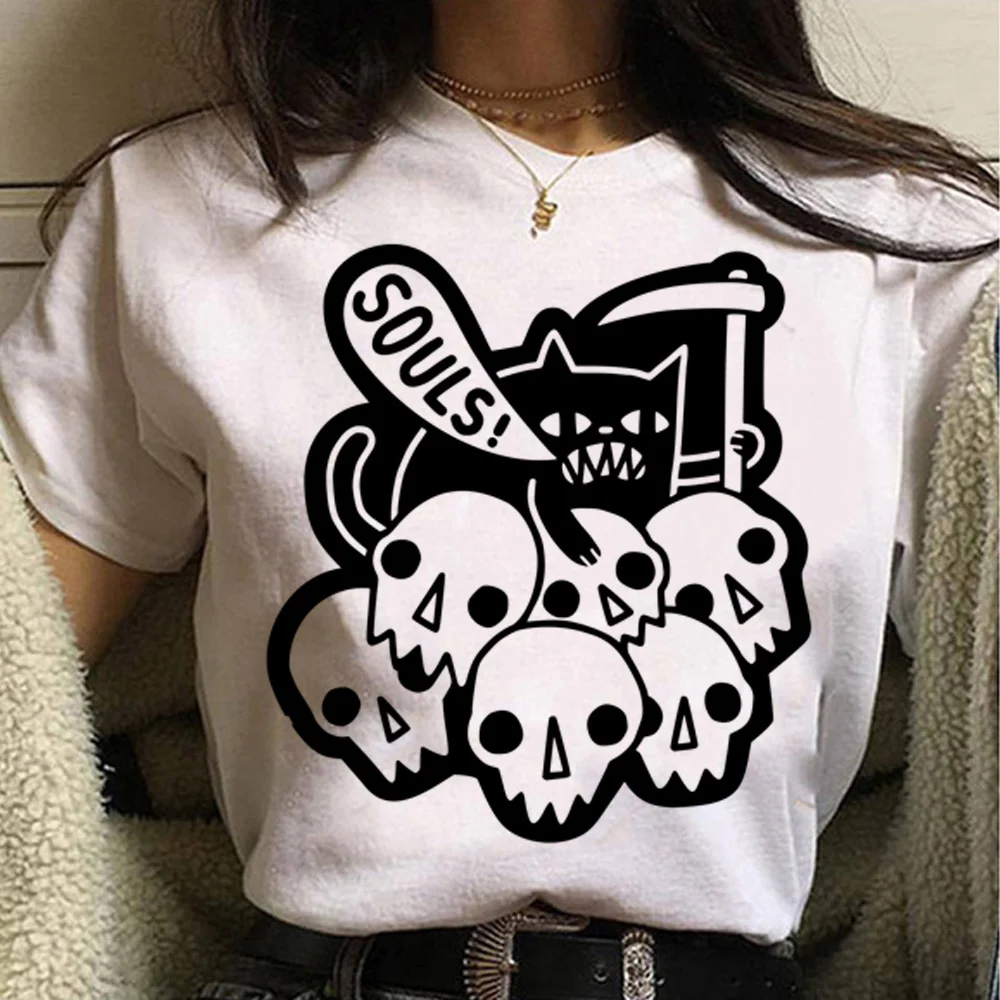 Женская футболка с рисунком кошки и души, Японская уличная одежда, дизайнерская аниме одежда в стиле Харадзюку