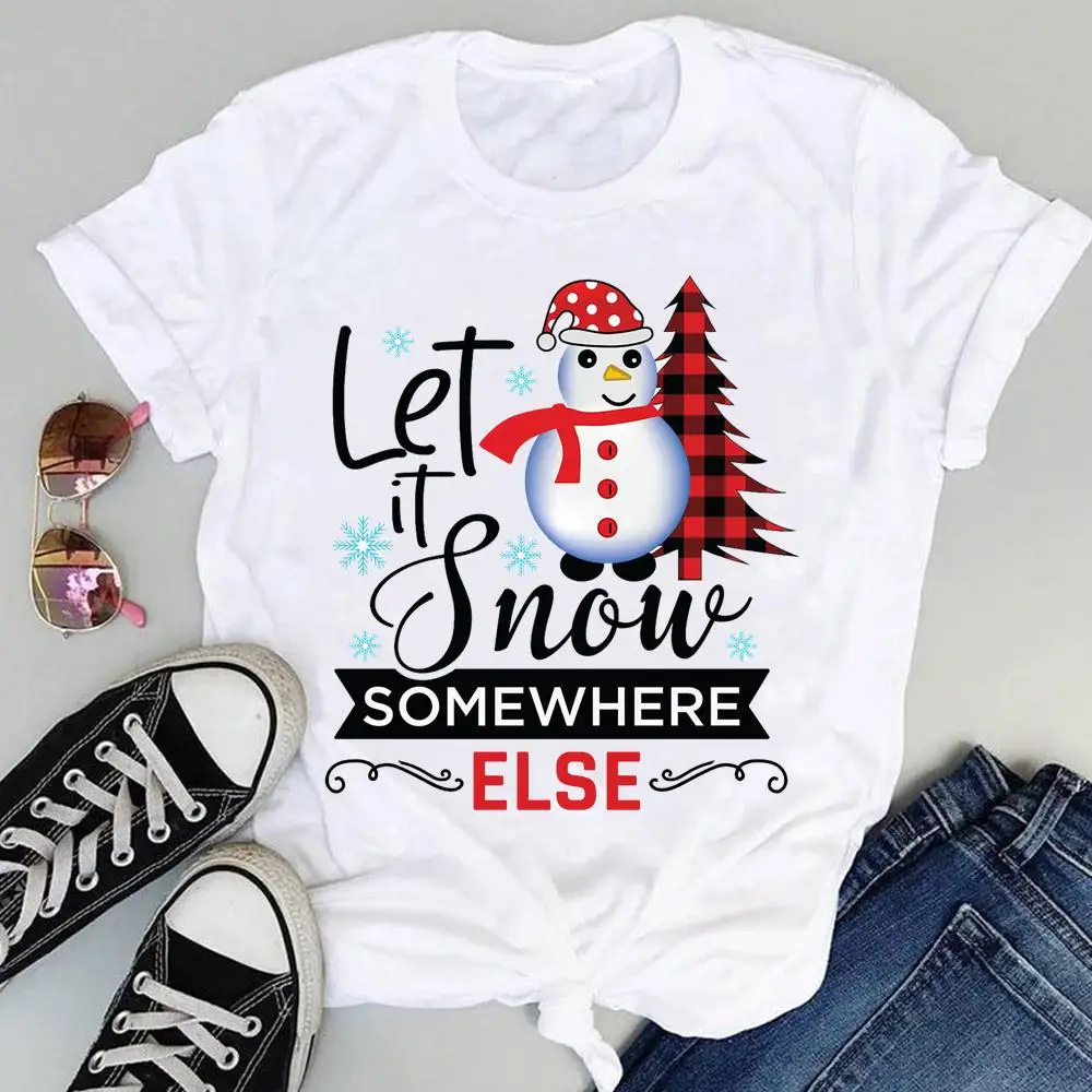 Женская футболка с рисунком снеговика, праздничный топ с графическим рисунком на Рождество и новый год