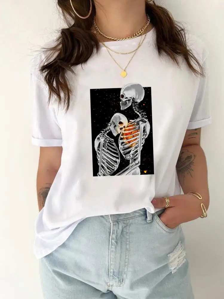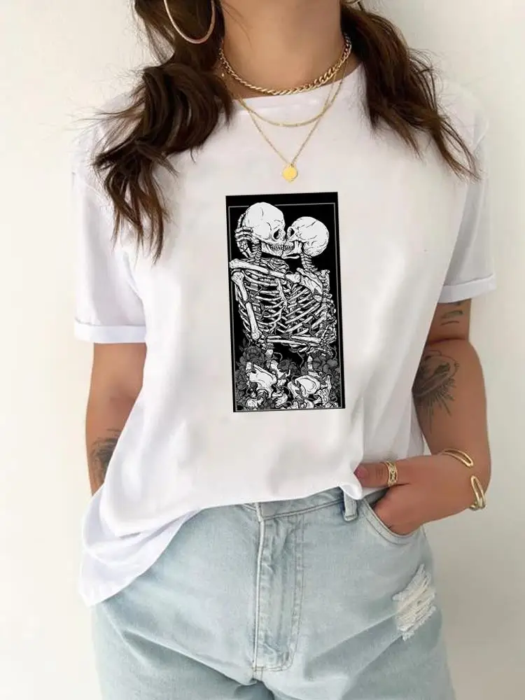 Женская футболка с рисунком черепа и цветов, осенняя футболка с графическим принтом для Хэллоуина