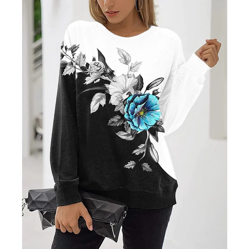 Женская футболка с цветочным принтом, круглым вырезом и 3D-принтом