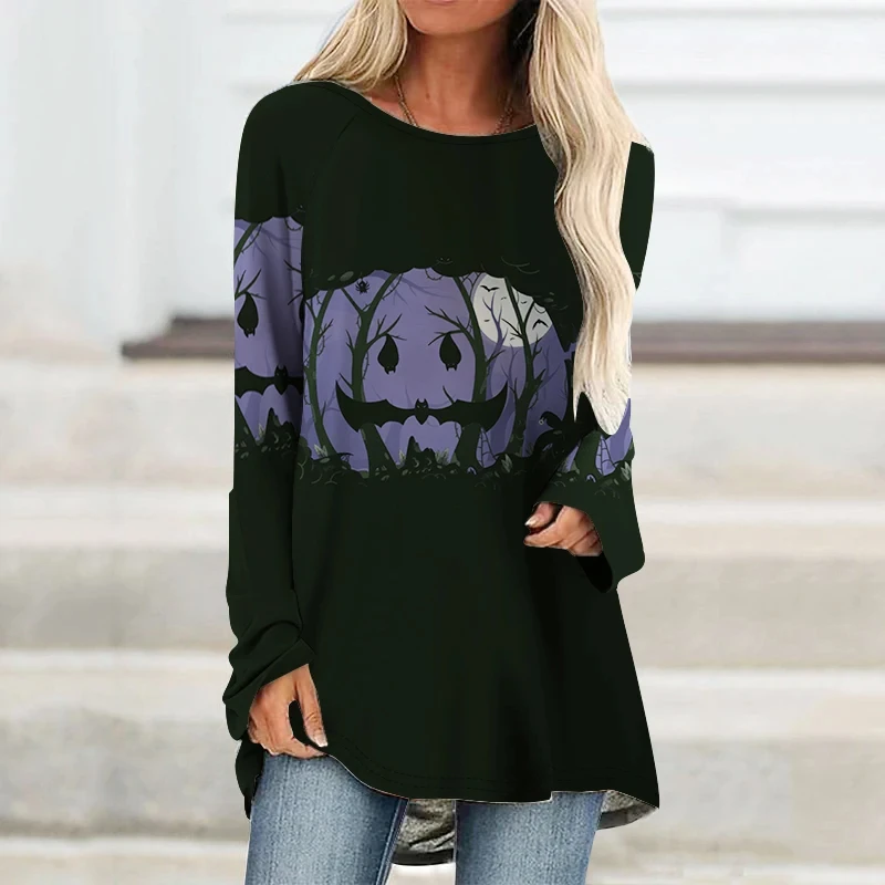 Женская футболка с 3D-принтом тыквы, свободный Универсальный пуловер с длинным рукавом и круглым вырезом, Y2K