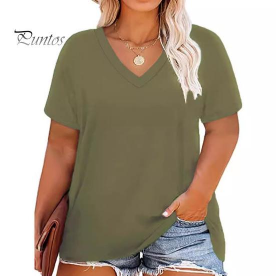 Женская футболка с V-образным вырезом и коротким рукавом, свободная футболка, однотонная повседневная дышащая футболка-пуловер, топы на каждый день M армия зеленый