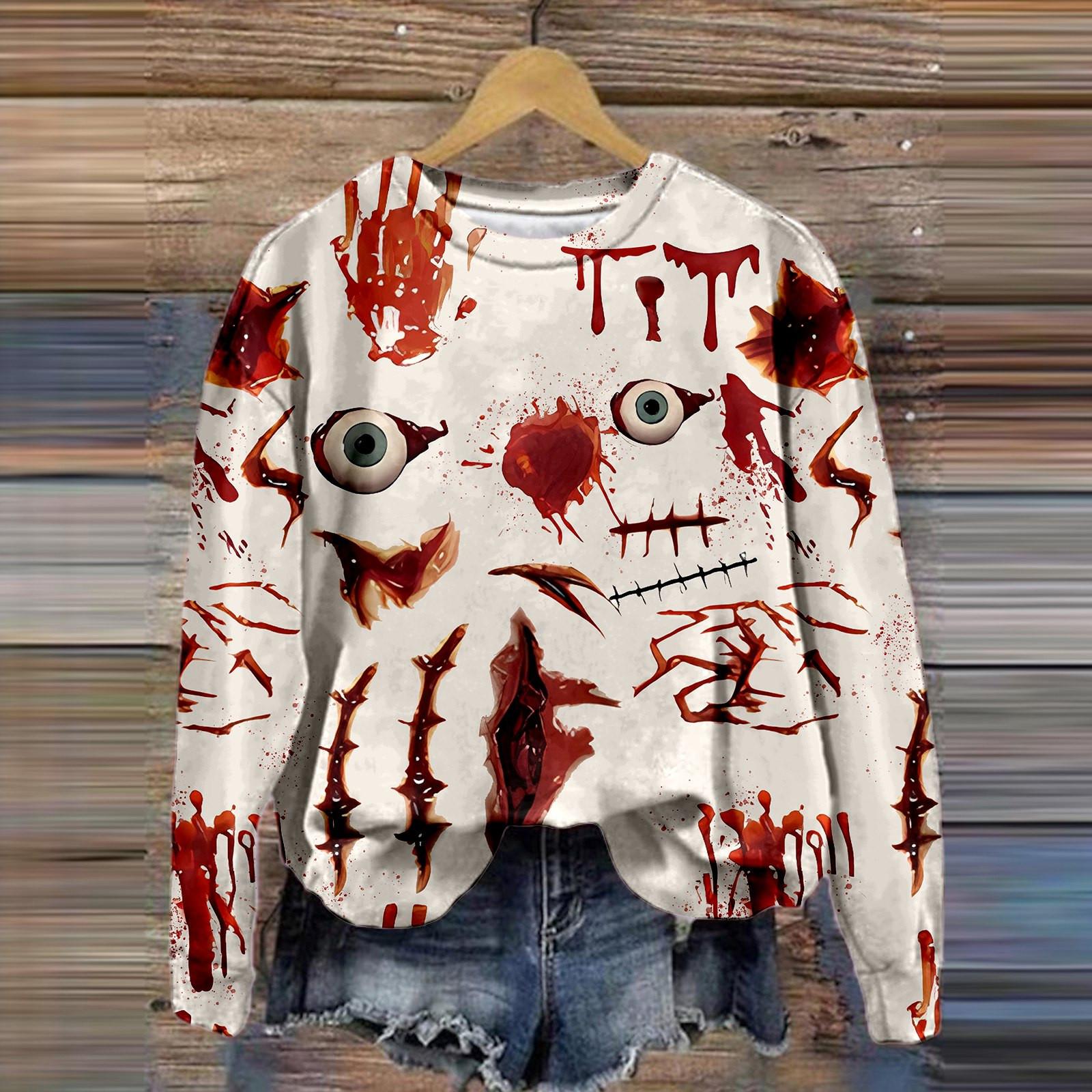 Женская хеллоуинская осень-зима, новая модная тенденция, толстовка с капюшоном, оригинальная вечеринка, кровавый принт, топ, пуловер для женщин, футболки 4XL