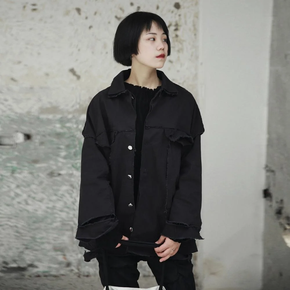 Женская хлопковая куртка-ветровка seak, черная ветровка в готическом стиле на осень