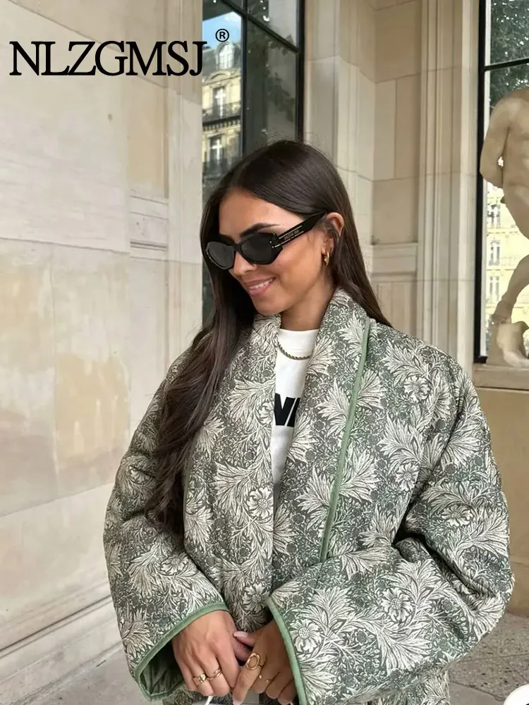 Женская хлопковая парка с принтом Nlzgmsj TRAF, Повседневная зимняя куртка с длинным рукавом, с карманами, 2023