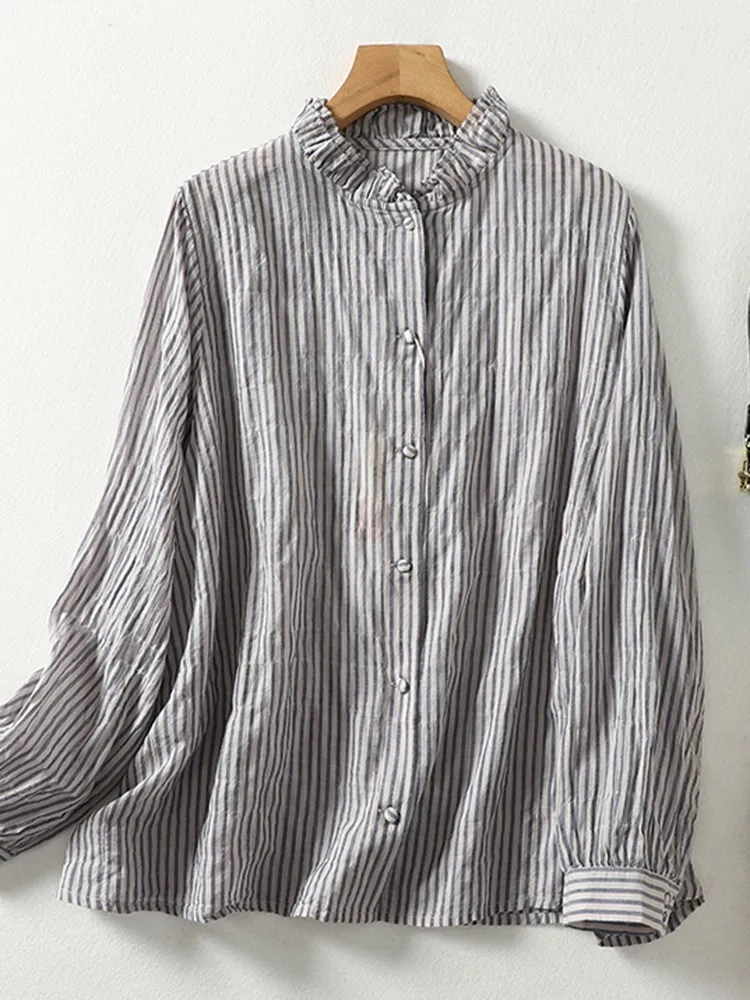 Женская хлопковая рубашка в полоску, свободная Элегантная Повседневная рубашка с длинным рукавом, в винтажном стиле, осень 100%
