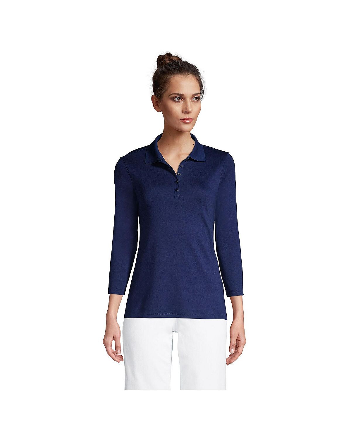 Женская хлопковая рубашка-поло Supima с рукавами три четверти Lands' End