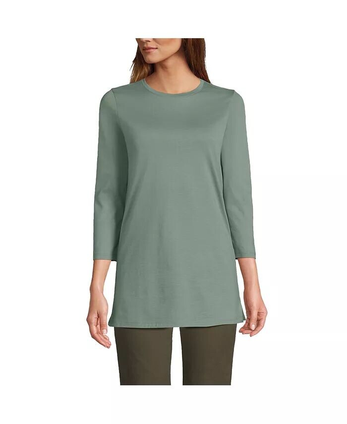 Женская хлопковая туника Supima с рукавом 3/4 для высоких женщин Lands' End, зеленый