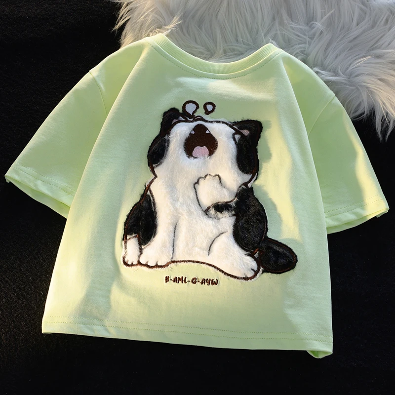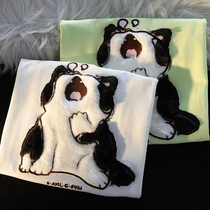 Женская хлопковая футболка с коротким рукавом, летняя Приталенная футболка с принтом кошки, Y2K, 2023