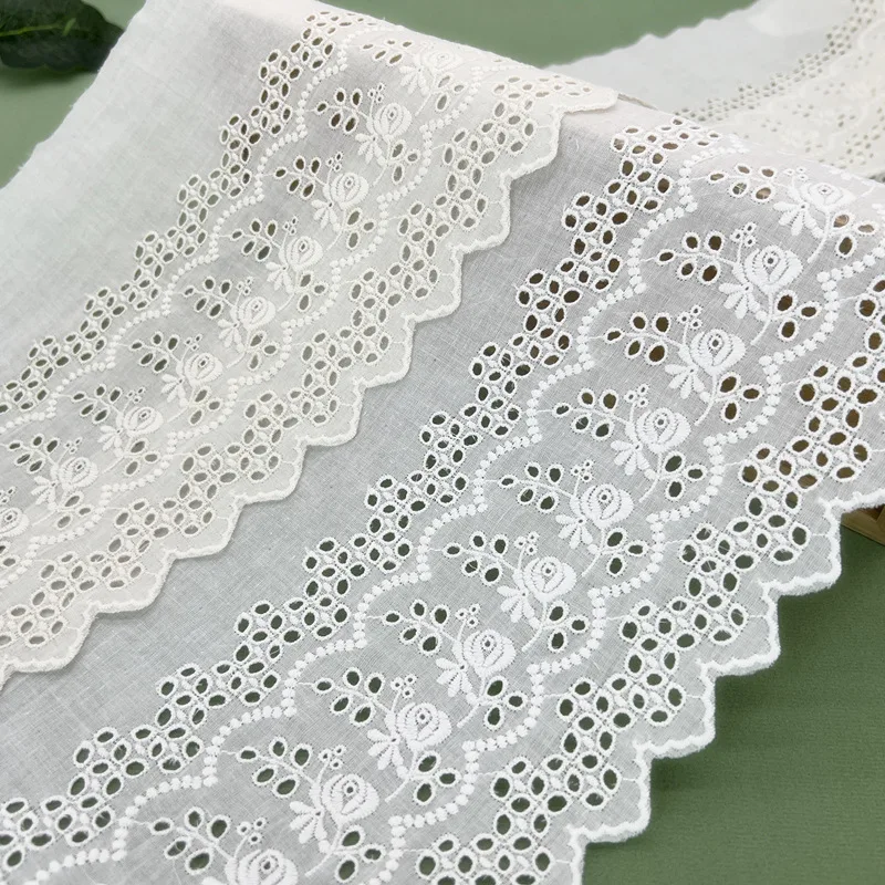Женская хлопковая юбка, белая кружевная юбка в полоску с цветочной вышивкой, ширина 15 см
