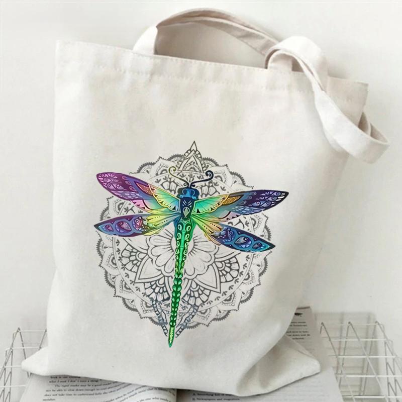 Женская холщовая сумка-тоут Gold Moon Dragonfly, модная сумка для покупок в стиле ретро унисекс, сумка через плечо